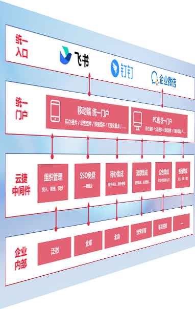 对协作平台提供支持服务,,支持企业应用与协作平台对接,,包含组织同步、、、、消息集成、、、、待办集成等。。。支持目前主流的协作平台:钉钉、、、企微和飞书。。。
